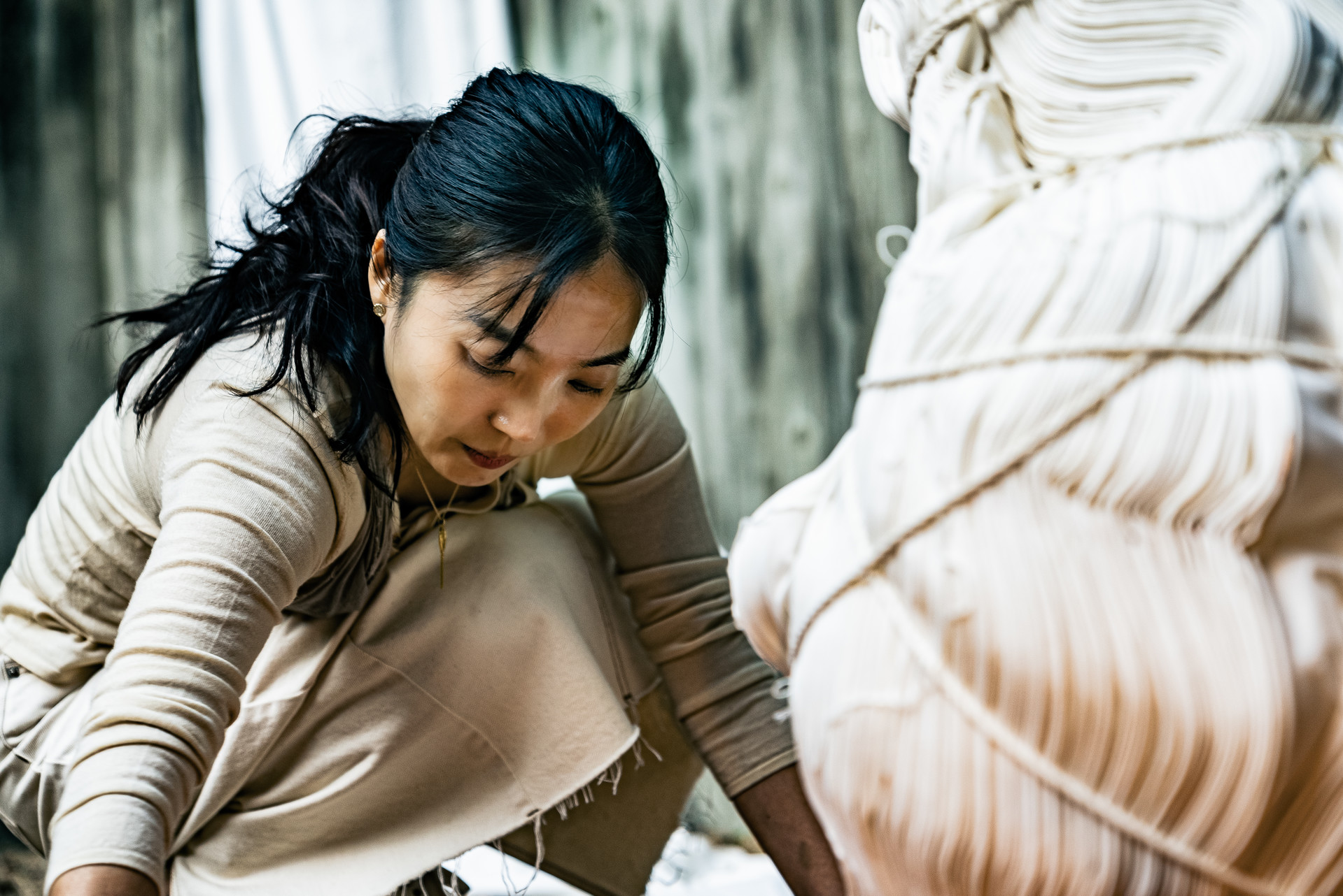 is a visionary Korean artist who transforms traditional materials such as hanji and hemp into contemporary works that capture the poetry of light, space, and time. Her practice moves fluidly between installation, craft, and textile, revealing the quiet beauty of traces, absence, and memory in everyday life.